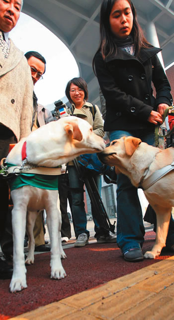 第一批在上海寄養(yǎng)的6條導(dǎo)盲犬已適應(yīng)了上海的基本生活和起居,在結(jié)束了半年的寄養(yǎng)期后,于今年9月回到南京,進(jìn)入導(dǎo)盲工作訓(xùn)練階段。在通過了這一階段后,它們還將與盲人共同生活,進(jìn)行第三階段的訓(xùn)練。有關(guān)人士告訴記者,導(dǎo)盲犬的培育是十分艱難的,在訓(xùn)練過程中發(fā)現(xiàn)有任何差池都會(huì)被隨時(shí)淘汰。在這6條小犬中,有2條由于體質(zhì)較弱不能勝任工作,再也不能成為導(dǎo)盲犬,之后又補(bǔ)充進(jìn)來2條幼犬再次在上海進(jìn)行寄養(yǎng)階段的生活。