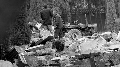 該陵園的工作人員不無痛心地告訴記者:這里烈士的墓碑和墓身,是先用大型裝載機(jī)推倒,再由人工打碎裝車?yán)叩摹!跋胂氚,烈士的遺骨怎能承受大型裝載機(jī)野蠻的傾軋!”