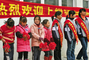 下午2時(shí)50分,捐贈(zèng)單位代表在學(xué)生“熱烈歡迎”聲中來到學(xué)校。幾位代表發(fā)言后,他們逐個(gè)班級向?qū)W生們贈(zèng)送書包、詞典、筆記本等文具。其中一名代表告訴記者:“本來說好2點(diǎn)鐘來的,后來開會(huì)耽誤了!