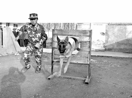 火場搜救是搜救犬的看家本領(lǐng)和必備技能。和傳統(tǒng)的警犬破案追兇相比,搜救犬工作的現(xiàn)實(shí)環(huán)境更為復(fù)雜。火場情況瞬息萬變,而且警犬的搜索是通過固定氣味源來實(shí)現(xiàn)的。但搜救犬在搜救生命的過程中,沒有固定的氣味源。因此,搜救犬的訓(xùn)練更注重對人生命體征,如氣味、心跳等方面的訓(xùn)練,訓(xùn)練它們對人生命體征的敏感程度。在演習(xí)現(xiàn)場的一端擺放著6個(gè)掩體,其中第三個(gè)和第六個(gè)掩體中躲藏有模擬被困人員的消防戰(zhàn)士!疤忑垺焙汀暗峡恕遍_始專心地進(jìn)行搜索。很快,“天龍”和“迪克”準(zhǔn)確地在第三和第六個(gè)掩體位置徘徊,并爬上掩體發(fā)現(xiàn)了被困者。搜救犬的精彩表演受到了各級領(lǐng)導(dǎo)和廣大群眾的廣泛稱贊和一致好評。