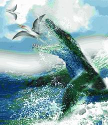 科學(xué)家稱,上龍?zhí)幱谫_紀(jì)時(shí)期海洋食肉動(dòng)物頂層,主要以魚龍為食,也大量捕食烏賊、魚類和其他水生食肉動(dòng)物。