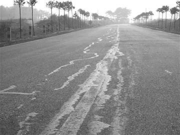黃陂區(qū)劉(佐輔)大(咀)公路原為四級(jí)公路,全長(zhǎng)18公里。2005年12月,該路動(dòng)工改建為二級(jí)公路,整個(gè)工程投資3240.7萬(wàn)元。2006年12月,劉大公路建成通車。然而,該路建成不到一年,路面就出現(xiàn)縱橫交錯(cuò)的裂縫,每隔一段就出現(xiàn)一個(gè)大補(bǔ)丁,部分地段還出現(xiàn)了地基沉降,導(dǎo)致路面下雨天積水。2007年11月,該路開(kāi)始進(jìn)行修補(bǔ),主要方式是對(duì)部分路段挖開(kāi)重新施工,在一些裂縫處灌瀝青。