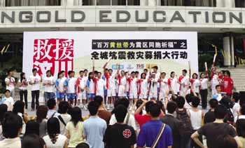 昨日下午2時(shí),由新快報(bào)、廣州電臺FM102.7、南方電視臺、新浪網(wǎng)四大媒體攜手廣東省慈善總會,在正佳廣場西北門和廣東新快報(bào)社主樓前(天河路533號僑鑫教育大院)兩大主場,舉辦“祈福同胞,愛心飛揚(yáng)———百萬黃絲帶為震區(qū)同胞祈福之全城抗震救災(zāi)募捐大行動”;顒舆在廣州崗頂好又多、天河城、江南西-廣百新一城、天河購書中心-維多利亞廣場、正佳廣場、友誼商店-世貿(mào)、荔灣廣場南門-上下九、中華廣場-流行前線、北京路-廣百、新光廣場-康王路、越富大廈等11個(gè)繁華地段設(shè)50個(gè)流動募捐點(diǎn),廣州青年志愿者協(xié)會還派出超過300名志愿者。