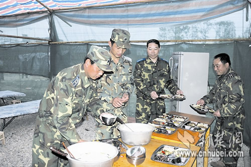 如何保障萬余官兵的吃飯問題,是一件非常重要的事情?战当筷(duì)早在出發(fā)之前,就攜帶了100余套能空投、便于運(yùn)行的野戰(zhàn)給養(yǎng)器材,每套設(shè)備在40分鐘內(nèi),可以做出120名官兵的飯菜,四菜一湯。而且,這種器材很輕便,只要2個(gè)戰(zhàn)士就能抬動。幾天前,該部又調(diào)集了16輛野戰(zhàn)炊事車,投放到漢旺、洛水和鎣華等鎮(zhèn),保障該部三個(gè)師的主力。這種車在40分鐘內(nèi)能完成150人的飯菜,四菜一湯,能隨著部隊(duì)移動,相當(dāng)于一個(gè)野戰(zhàn)廚房。