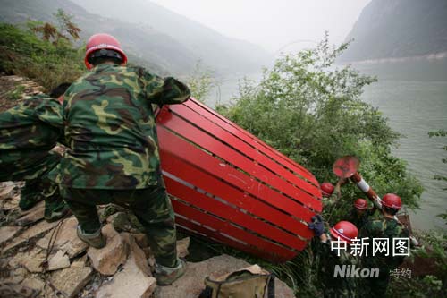 三峽庫(kù)區(qū)巫峽航標(biāo)搬遷現(xiàn)場(chǎng)。