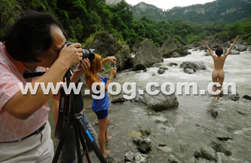 昨日下午3時(shí)許,從事人體模特5年,來自新加坡的人體模特張咪首先裸身出鏡。張咪擺好優(yōu)美的造型后,參加試鏡的兩名攝影師把鏡頭聚集模特美麗的胴體,隨著攝影師們不斷按下快門,模特秀麗的身姿連同南江大峽谷美景一起定格在鏡頭里。