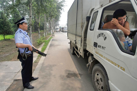 7月10日,北京警方荷槍實(shí)彈把守主要進(jìn)京通道。 人民網(wǎng)