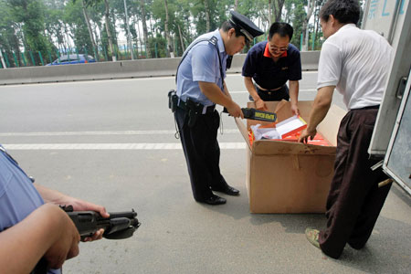 警方對(duì)進(jìn)京車輛進(jìn)行安全檢查。 人民網(wǎng)
