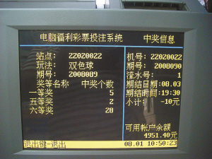 投注機(jī)上顯示中了5注一等獎(jiǎng)