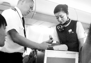 昨晚8:20,距離CA4156次航班起飛還有10分鐘,烏魯木齊機(jī)場(chǎng)安保人員和空姐,拿著一個(gè)小儀器,開始對(duì)飛機(jī)上的乘客的手掌虎口進(jìn)行檢查!耙粋(gè)小儀器,空姐解釋可以測(cè)出是否接觸過爆炸物!毙禊i在課堂內(nèi)外雜志社工作,7月28日出差到烏魯木齊,準(zhǔn)備回渝。