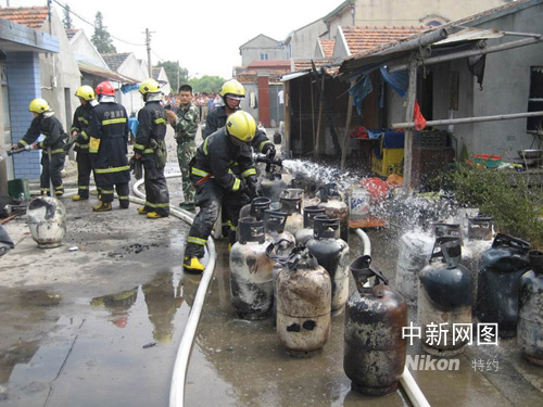 中新網(wǎng)寧波9月22日電(何蔣勇 帥帥)今天上午9點(diǎn)32分,位于浙江鎮(zhèn)海區(qū)一村莊發(fā)生了一起煤氣瓶代充點(diǎn)爆炸事件,造成了一人受傷。該煤氣瓶代充點(diǎn)內(nèi)有近60個(gè)左右的煤氣瓶,發(fā)生火災(zāi)后就連續(xù)爆炸,一連串的爆炸了30個(gè)左右。房子的房頂都已經(jīng)坍塌,墻壁也被炸裂,并排房子的玻璃全部被震碎了,就連隔著一條馬路的小店都遭了殃,小店內(nèi)的東西都被烤化,水果也被烤熟了。