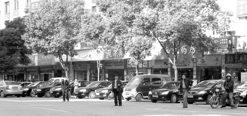 在大冶街頭,記者并沒有找到“文明冶人”張貼的“尋官啟事”,卻發(fā)現(xiàn)了另外一個(gè)“奇特”的現(xiàn)象:大冶市交通局對面的人行道上,一字排開停放了11輛轎車,而路面上沒有任何停車標(biāo)志。