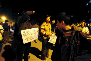 暫時無家可歸的居民都聚集在街邊觀望,夏茅村居民陳伯估計:“封鎖那么大一片地方,少說都有成千人回不了家!本用裥堑淖√巹偤迷诜怄i線上,他跟治保員央求了半天,也未進得家門,“只是想進去拿點東西都不行”。一名治保員告訴記者:“因為地陷嚴(yán)重,有幾座樓傾斜了,現(xiàn)在靠近很危險,另外我們也怕有人借機行竊!