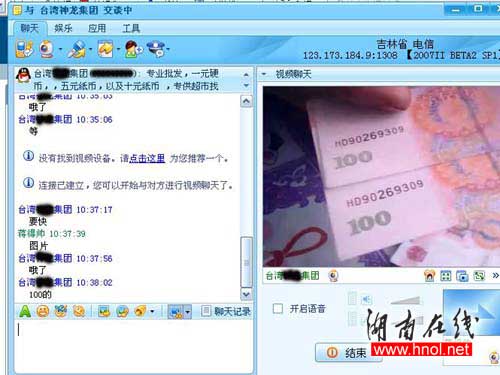 據(jù)記者與該男子聊天時,QQIP地址欄顯示對方IP在日本,接通視頻聊天后,IP地址又更換為“吉林省123.173.184.9:1308”。據(jù)該男子提供的手機(jī)號碼1363627****的歸屬地為湖北恩施,另一個手機(jī)號1313016****的歸屬地為遼寧鞍山。同時向記者提供了一個農(nóng)行帳號和一個工行帳號。