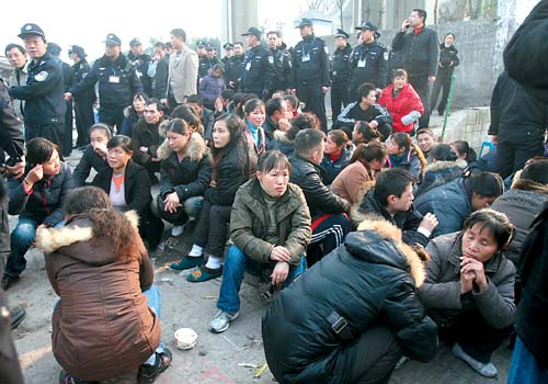 昨日下午,在警方行動之前,記者在菜園壩長江大橋北橋頭上看到,在長濱路珊瑚公園外一塊空地上,竟聚集了近百名男女,或交頭接耳,或竊竊私語,他們向路過的行人兜售近日去往各重點城市的火車票。
