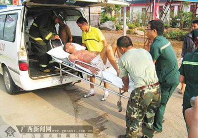 據(jù)了解,下午3時(shí)已有人聞到煤氣味道。下午5時(shí),當(dāng)時(shí)公廁內(nèi)有兩人在上廁所,其中一人打火點(diǎn)煙時(shí)引燃了泄漏的燃?xì)獍l(fā)生火災(zāi),抽煙男子全身多處燒傷,另一人則頭發(fā)燒焦,沒有什么大礙。目前,兩名傷者正在醫(yī)院接受治療。(南國(guó)早報(bào))(蘇勝東 羅期譯)