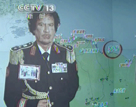 卡扎菲被殺后還沒有下葬,其遺體被放肉鋪冷藏室,不少民眾排隊觀看。