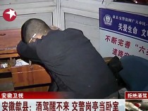 酒駕司機(jī)爛醉如泥 把交警崗?fù)ぎ?dāng)臥室