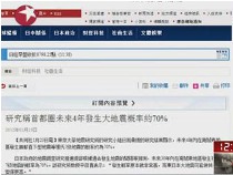 研究稱日本首都圈未來(lái)4年大地震概率約70%