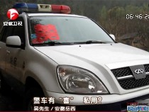 警車前擋風(fēng)玻璃貼紅雙喜 又見公車私用?