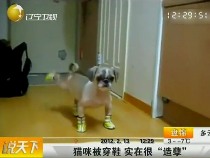 可愛(ài)小貓小狗穿鞋不會(huì)走路