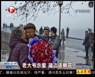 老大爺示愛 湖邊送鮮花
