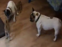 德國(guó)斗牛犬成六只小野豬“代理媽媽”