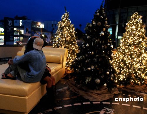 當?shù)貢r間十二月二十四日,圣誕節(jié)前夕,洛杉磯一對有情人在圣誕樹美妙的燈光下談情說愛,享受浪漫時光。中新社發(fā) 賈國榮 攝