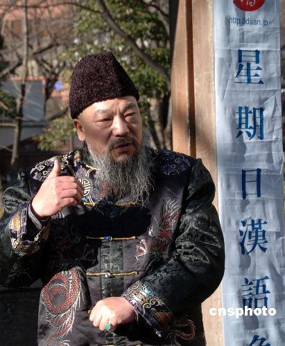 1月27日,東京星期日漢語(yǔ)角舉行第24次交流會(huì),邀請(qǐng)正在日本訪問(wèn)的中國(guó)著名國(guó)畫大師安云霽教授進(jìn)行演講和座談。安云霽不僅介紹了中國(guó)的文化藝術(shù),還就中日文化交流、北京奧運(yùn)會(huì)等話題進(jìn)行了深入淺出的演講。安云霽的滿口京腔以及充滿中華民族色彩的服裝,吸引了參加漢語(yǔ)角的日本朋友,多次贏得熱烈的鐘掌聲。中新社發(fā) 段躍中 攝