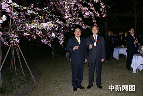 4月2日晚,中國駐福岡總領(lǐng)事館與福岡縣廳所在知事官邸共同舉辦“中日企業(yè)賞櫻交流會(huì)”。福岡縣三十余位經(jīng)濟(jì)界人士和二十余家在福岡中資企業(yè)代表歡聚一堂,賞櫻交流,暢談合作。圖為武樹民總領(lǐng)事(右)與福岡縣麻生渡知事在櫻花樹下。朱沿華 攝