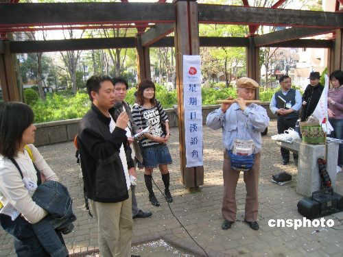 4月6日,日本僑報社創(chuàng)辦的星期日漢語角在東京西池袋公園舉行第34次交流活動。參加者用日中兩國語言演唱了《北國之春》、《大海啊故鄉(xiāng)》等中日名曲,贏得在場人員的陣陣掌聲。中新社發(fā) 段躍中 攝