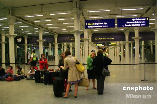 圖為11日晚間,倫敦圣潘克斯火車站取消了前往巴黎和布魯塞爾的列車,現(xiàn)場(chǎng)滯留的乘客被迫排隊(duì)等候訂酒店。