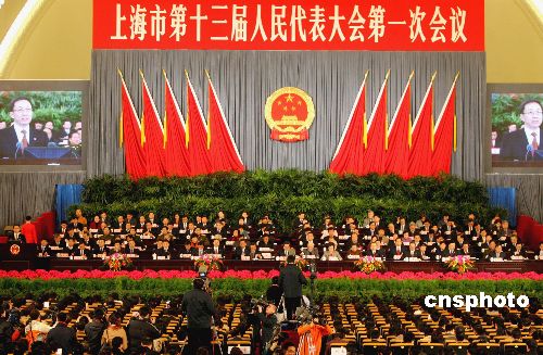 1月24日上午9時(shí),上海市第十三屆人民代表大會(huì)第一次會(huì)議在上海展覽中心中央大廳開幕。中新社發(fā) 湯彥俊 攝