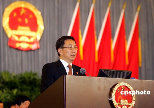 圖為市長韓正作上海市人民政府工作報(bào)告。