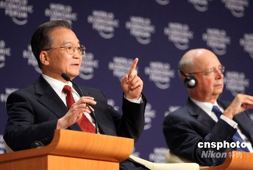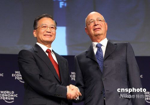 9月27日,2008天津夏季達(dá)沃斯論壇“新領(lǐng)軍者年會(huì)”開幕,中國(guó)總理溫家寶、世界經(jīng)濟(jì)論壇主席施瓦布出席開幕會(huì)。中新社發(fā) 張宇 攝