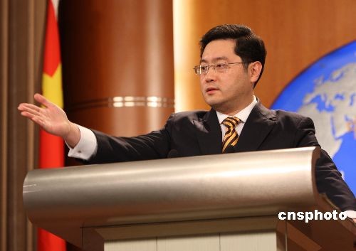 十一月二十五日,外交部發(fā)言人秦剛在例行的記者招待會上宣布:第五次中美戰(zhàn)略經(jīng)濟對話十二月四日至五日將在北京舉行。中國國務院副總理王歧山和美國財政部部長鮑爾森將分別作為兩國國家元首的特別代表共同主持對話。中新社發(fā) 史利 攝
