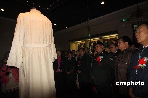 2008年12月25日,毛澤東有73個補丁的睡衣在韶山毛澤東遺物館展出。 中新社發(fā) 郭國權 攝