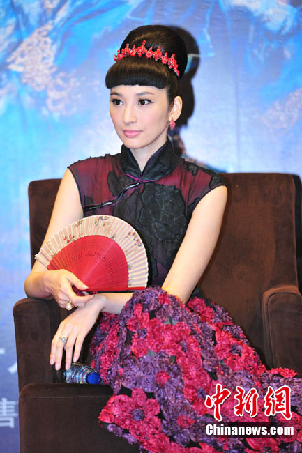 8月12日,由吳佩慈和張翰主演的驚悚喜劇《夜幕驚魂》在北京舉行關(guān)機(jī)發(fā)布會。影片導(dǎo)演丁小洋攜主演吳佩慈、張翰、連晉等主演均以“民國造型”出席。而發(fā)布會途中卻遭兩位自稱“吳佩慈粉絲”的重癥精神病患者砸場鬧事,兩人在一陣大呼小叫后持“刀”沖向花容失色的吳佩慈,讓現(xiàn)場震驚。張翰等男演員則頓時跳起護(hù)住吳佩慈。眾人合力制服兩位精神病患者后,導(dǎo)演竟然宣布這是演戲,讓現(xiàn)場媒體哭笑不得。搞笑刺激的橋段讓人對這部將于明年初上映的影片倍感期待。圖為吳佩慈優(yōu)雅亮相。中新社發(fā) 李學(xué)仕 攝