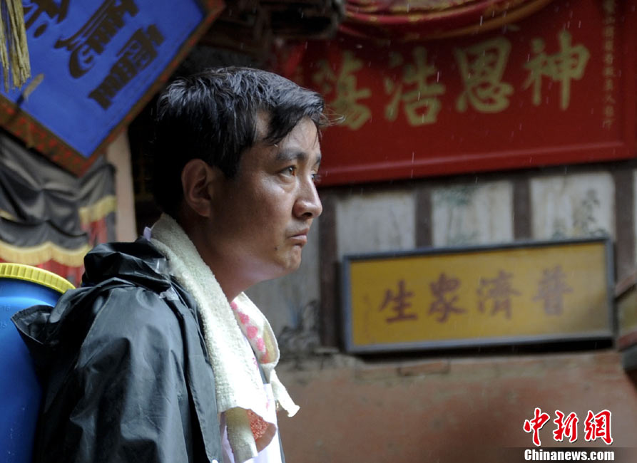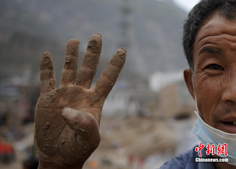 舟曲一位居民整理親人遺物的手,他有四位親人遇難。8月8日凌晨,甘肅省舟曲縣因強(qiáng)降雨引發(fā)滑坡泥石流,造成重大人員傷亡,電力、交通、通訊中斷。中新社記者 廖攀攝