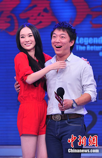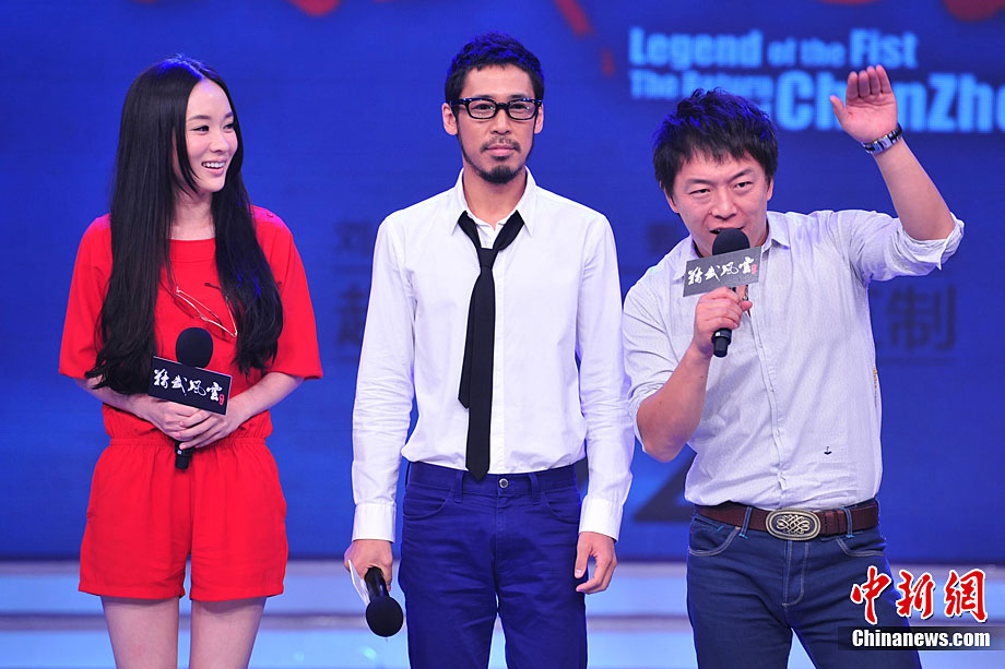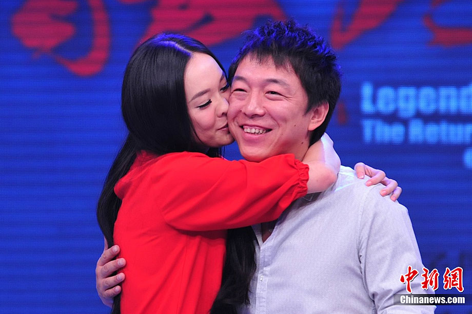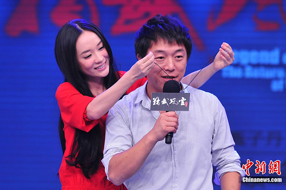 8月26日,影片《精武風(fēng)云·陳真》在北京舉行終極版預(yù)告片發(fā)布會(huì),演員黃渤、霍思燕、木幡龍紛紛亮相。圖為霍思燕在現(xiàn)場(chǎng)激情擁吻黃渤,讓“影帝”驚喜不已,現(xiàn)場(chǎng)一片驚呼。中新社記者 李學(xué)仕 攝
