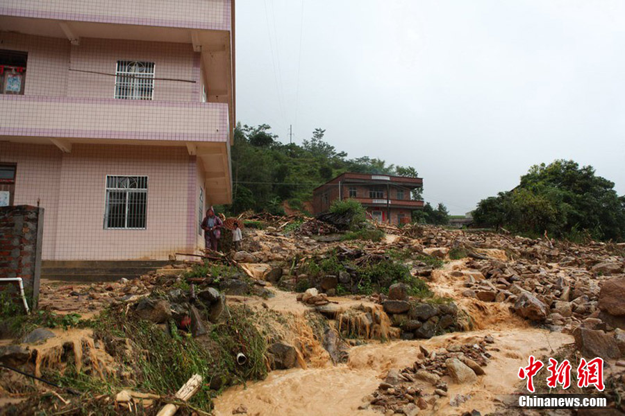 據(jù)廣東省防總消息,截至21日23時(shí),“凡亞比”造成廣東高州市、信宜市、陽(yáng)春市三市共死亡13人,失蹤33人。圖為暴雨引發(fā)山洪災(zāi)害。中新社發(fā) 聞達(dá) 攝