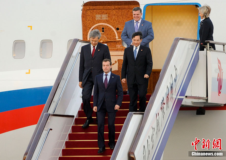 9月26日,俄羅斯總統(tǒng)梅德韋杰夫乘專機(jī)抵達(dá)北京。北京是他此次訪華行程的第二站。中新社記者 廖攀 攝