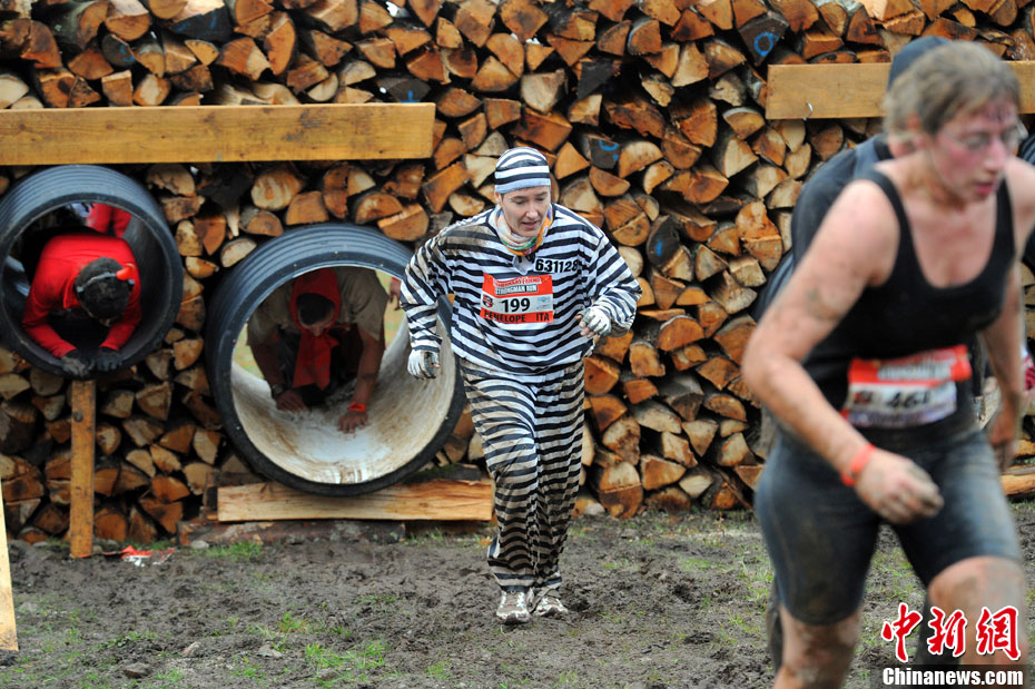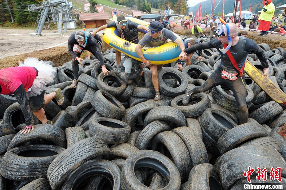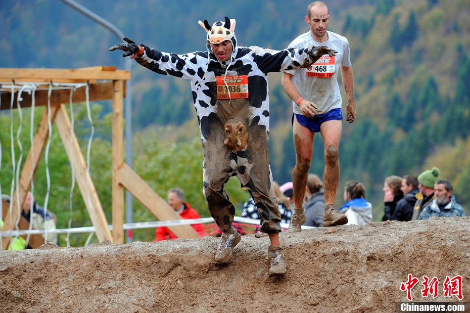 當(dāng)?shù)貢r(shí)間2010年10月17日,法國東部布雷斯(La Bresse)人們參加漁夫“狂奔”跑步大賽。