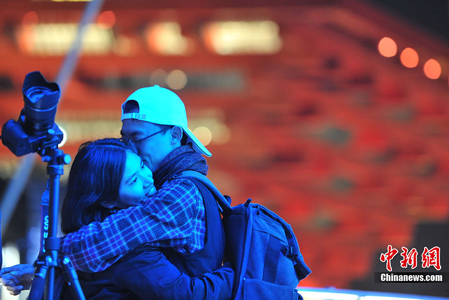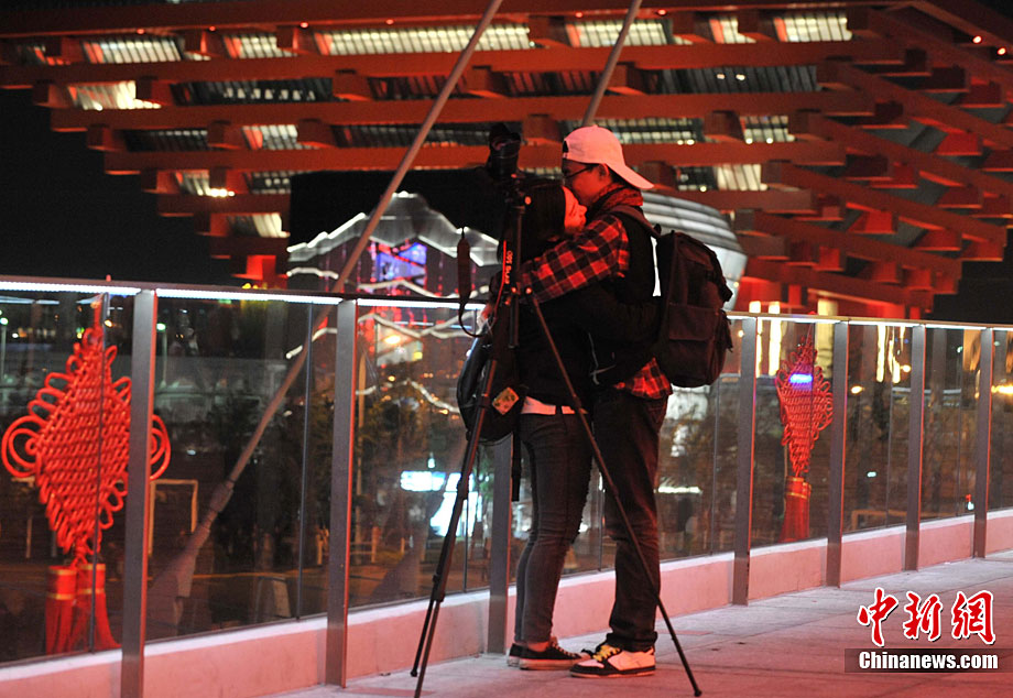 10月30日,上海世博會(huì)閉幕前夜,一對年青戀人深夜擁吻在世博園中國館前,沉浸于美好夜色里不忍離去。中新社記者 賈國榮 攝