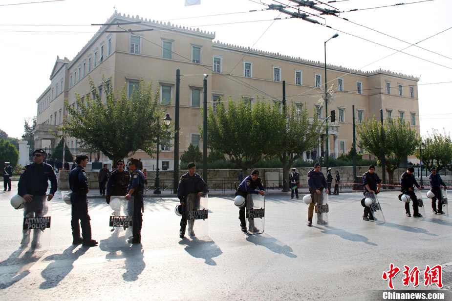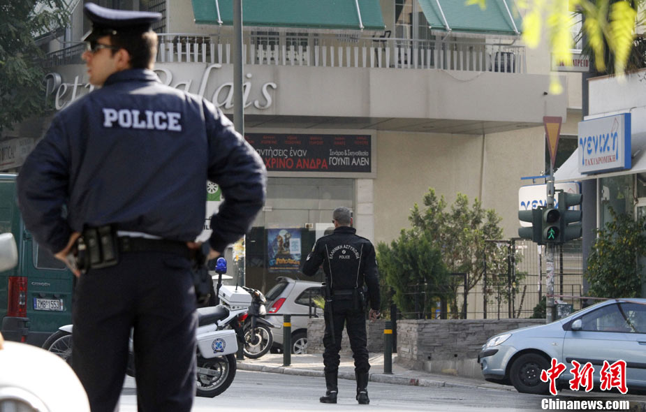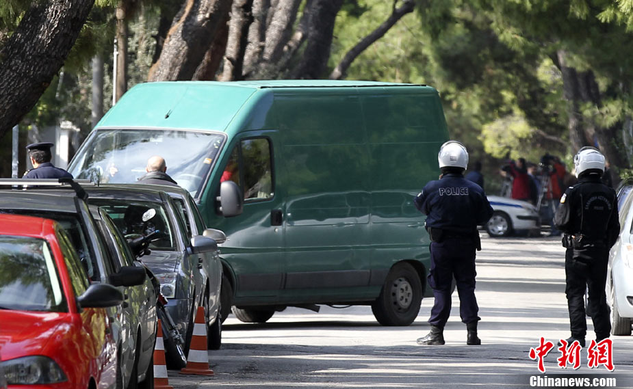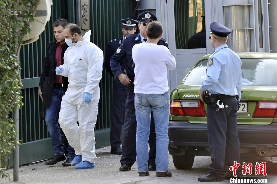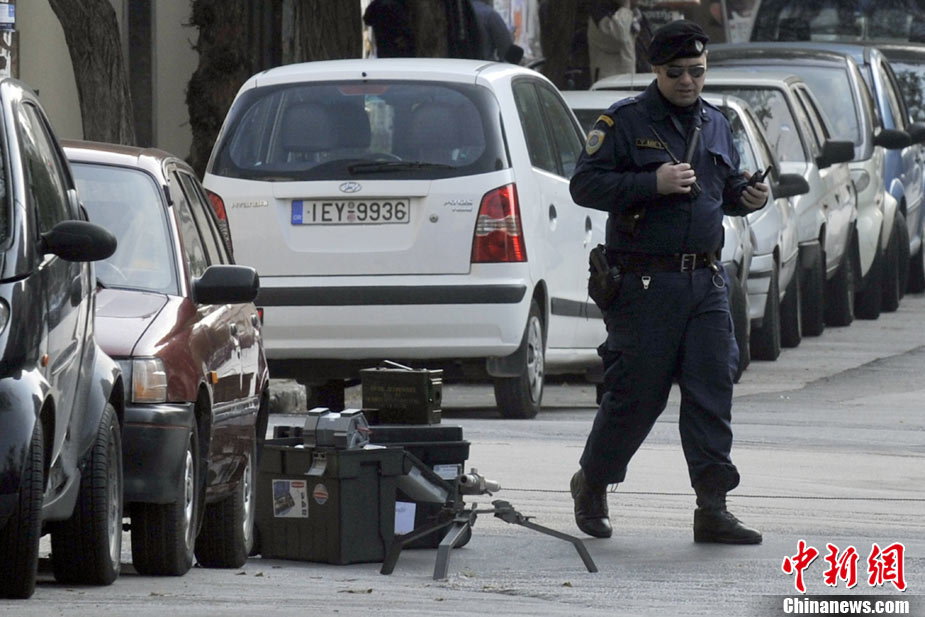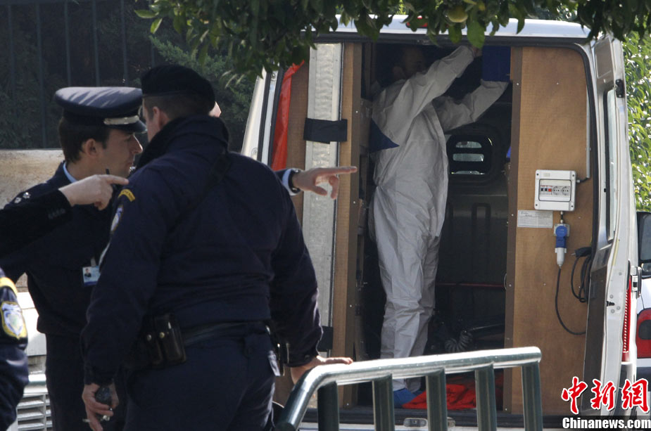 希臘首都雅典2日共發(fā)生5次小型爆炸事件,但沒(méi)有造成人員傷亡。瑞士、俄羅斯等國(guó)駐希臘大使館2日先后發(fā)生爆炸,另外希臘警方在議會(huì)、保加利亞使館與一家旅游公司門(mén)前分別引爆了3枚郵包炸彈。圖為在俄羅斯使館門(mén)前防爆人員在處理現(xiàn)場(chǎng)。