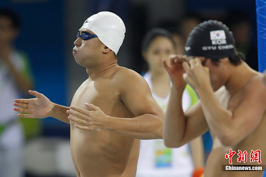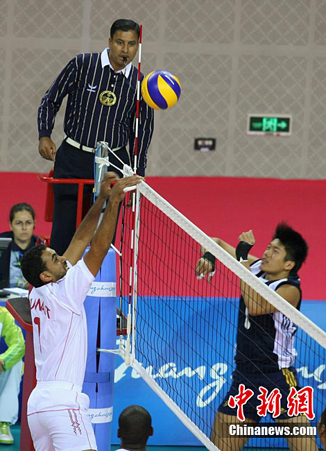 11月14日,在廣州亞運會排球男子預賽D組的比賽中,以年輕球員為主的中國香港隊0:3負于科威特運動員。中新社記者 鄧霞 攝