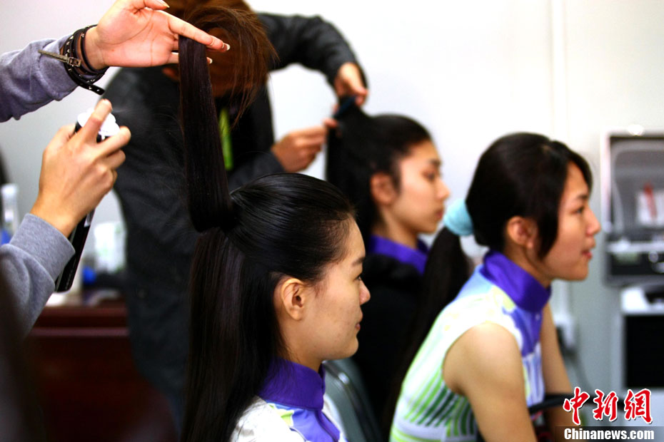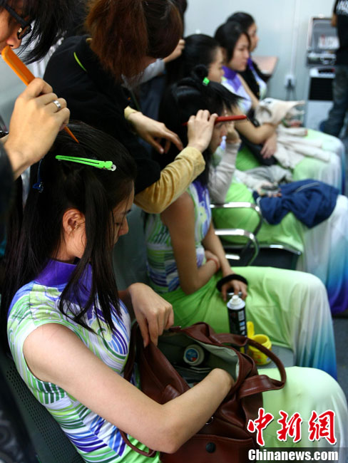廣州亞運(yùn)會(huì)比賽開始后,對(duì)于這些美麗的姑娘們“戰(zhàn)斗”才剛剛打響,她們每天早上6點(diǎn)半就起床,趕到賽場(chǎng),開始4個(gè)小時(shí)的準(zhǔn)備工作——化妝、做頭發(fā)、整體造型,這一切都為頒獎(jiǎng)典禮的那短短一刻。