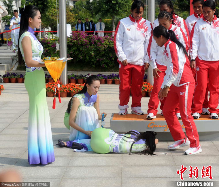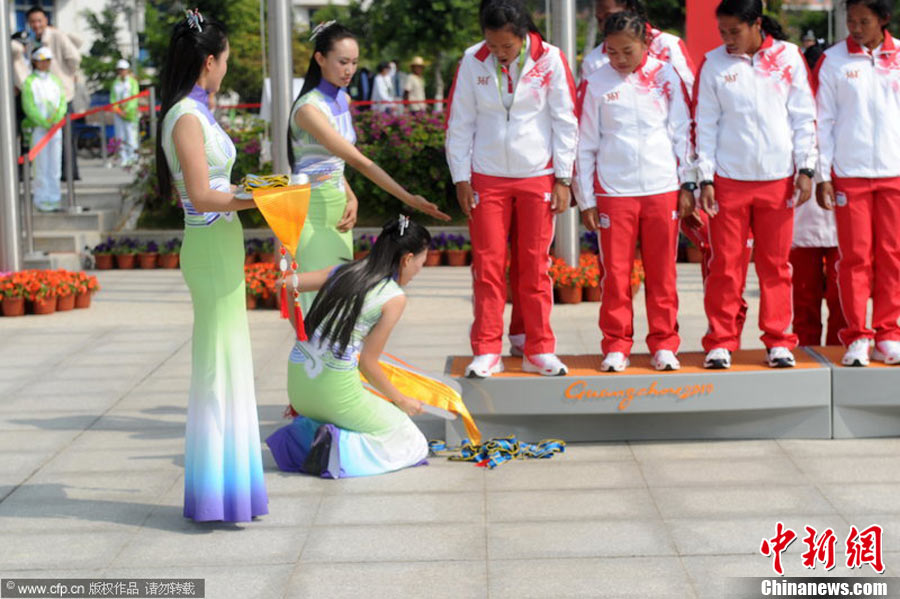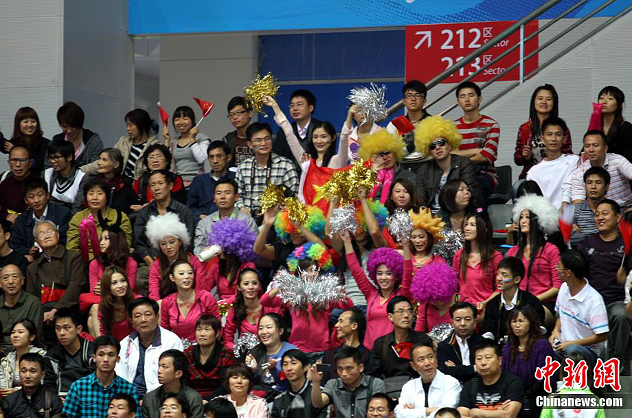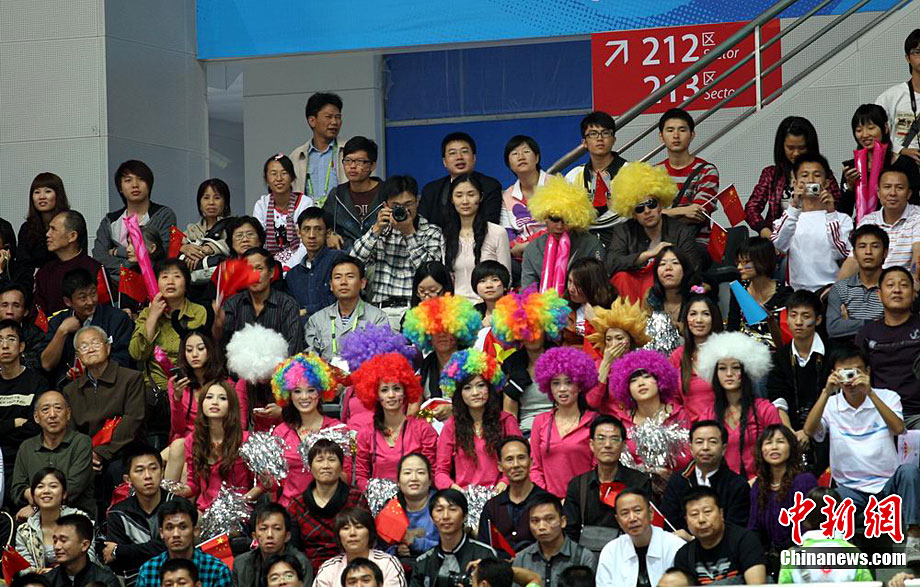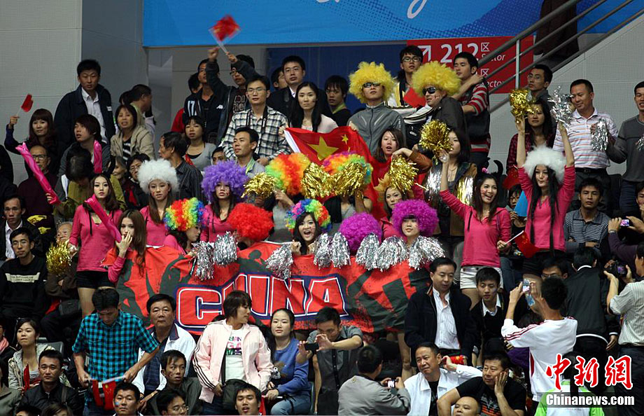 11月17日,廣州亞運會男排小組賽迎來最后一天的較量。在當晚進行的中國男排對陣泰國男排的比賽中,看臺上一群美女觀眾令賽場氣氛大為火爆。中新社記者 鄧霞 攝