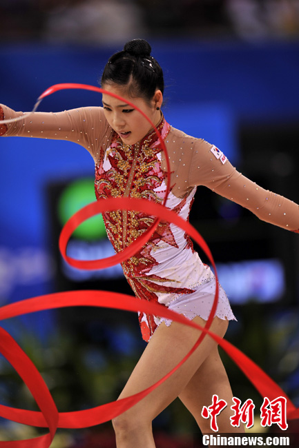 11月25日,亞運(yùn)會(huì)上最“唯美”的項(xiàng)目藝術(shù)體操正式開賽,90后的小選手們纖細(xì)曼妙的身材、柔美而富有韻律的動(dòng)作成為亞運(yùn)賽場(chǎng)最美的風(fēng)景線。中新網(wǎng)記者 金碩 攝