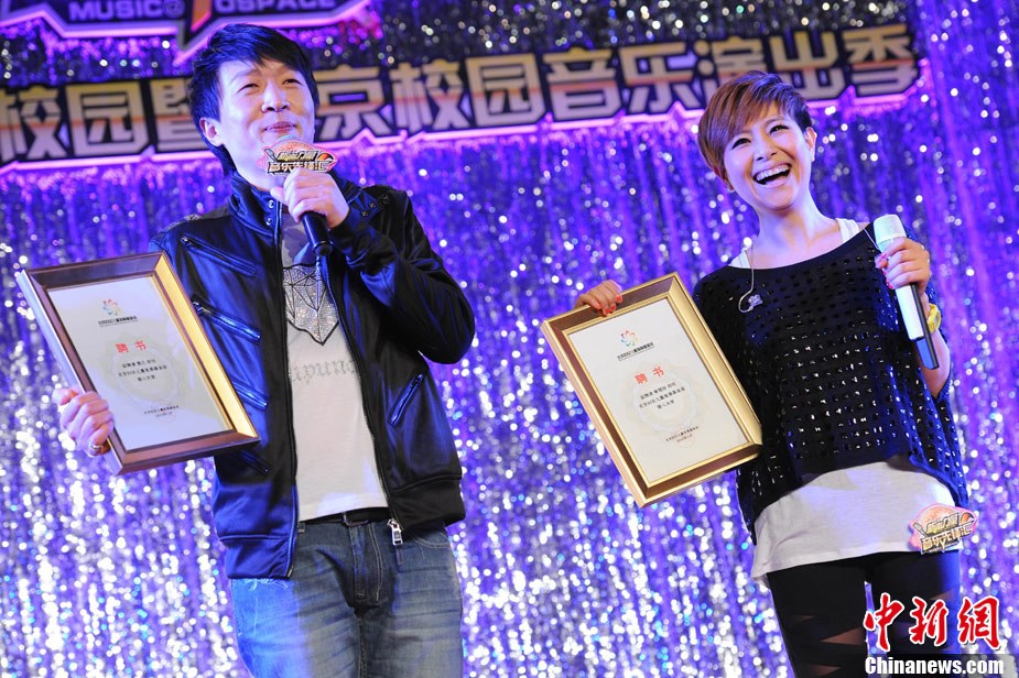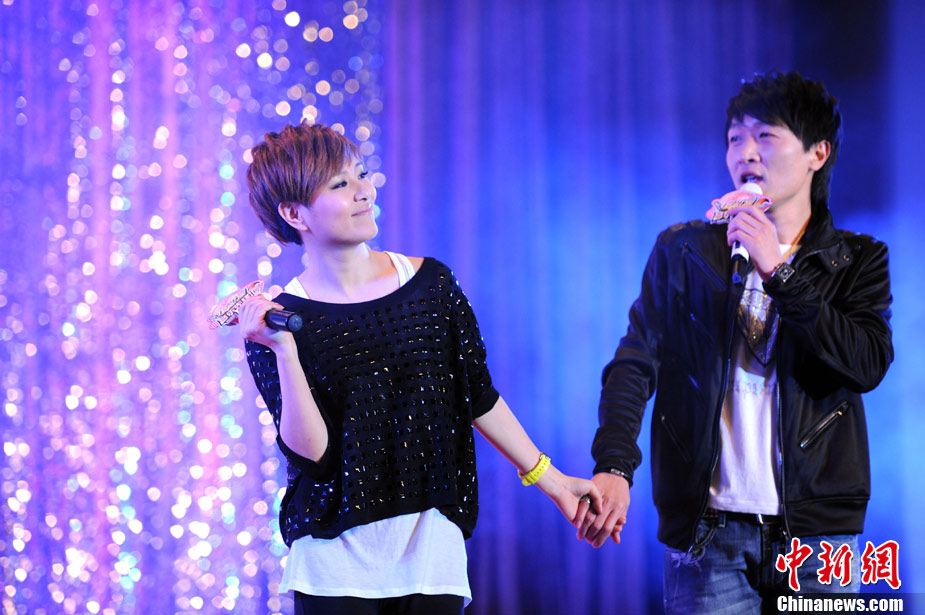11月29日晚,2010公益進(jìn)校園暨北京校園音樂演出季活動(dòng)之李慧珍&樊凡主題歌友會(huì)在北京化工大學(xué)舉行,兩位歌手為歌迷們獻(xiàn)上了一首首經(jīng)典的曲目。因演唱熱播電視劇《蝸居》主題曲爆紅的樊凡還親自譜曲了情歌《只需要一首歌》,并與李慧珍牽手甜蜜合唱。現(xiàn)場(chǎng),積極投身愛心公益事業(yè)的樊凡和李慧珍還為貧困學(xué)生頒發(fā)了“媽媽的年夜飯”善款,并雙雙被北京婦女兒童基金會(huì)聘為“愛心大使”。圖為李慧珍、樊凡牽手獻(xiàn)唱。中新社記者 李學(xué)仕 攝